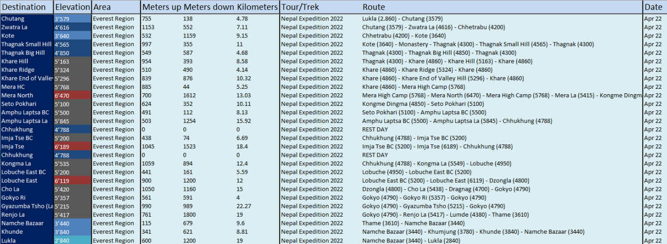 Auszug aus meinem persönlichen Tourenbuch - Tagesetappen mit Höhenmetern & Kilometern