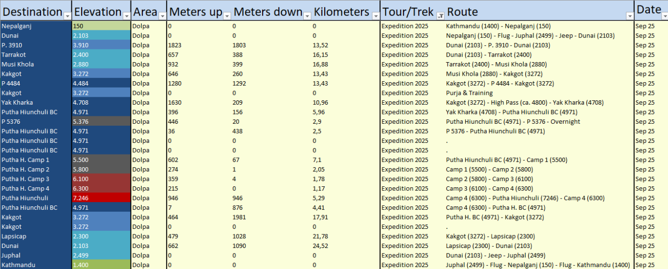 Hier der Schedule meiner Putha Hiunchuli Expedition im Jahr 2025.