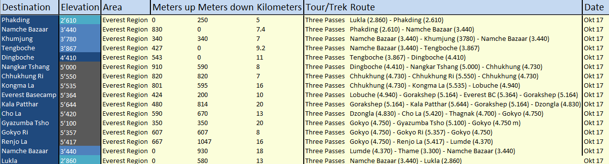 Ich habe hier Three Passes, Gokyo Lakes und Everest Basecamp Trek kombiniert. Diese Treks lassen sich hervorragend verbinden. Über die drei Pässe Kongma La, Cho La und Renjo La erkundet man so einen grossen Teil der Khumbu-Region.
