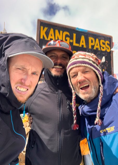 2018 kam ich dann direkt wieder zurück nach Nepal und bewunderte zum ersten Mal das Annapurna- sowie das Manaslu-Massiv mit seinen 7000- und 8000ern. Berge wie der Manaslu, Ngadi Chuli, Himal Chuli, Khangsar Kang, Annapurna II, Annapurna III oder der Kang Guru beeindruckten mich nachhaltig. Zu diesem Zeitpunkt war ich noch kein Bergsteiger und ich wollte zunächst möglichst viele hohe Pässe besteigen, um möglichst viel Erfahrung in der Höhe zu sammeln. Hinzu zu meiner Liste kamen in diesem Jahr der Kang La, Thorong La, Rui La und der Larkya La. In diesem Jahr lernte ich auch Himalayan Yogi Adventure kennen. Achut war als Trekking-Guide mit uns unterwegs. Ich war sehr beeindruckt von seiner warmherzigen Art, seiner Professionalität sowie seinem Mindset. Es passte einfach auf Anhieb mit meinen eher wilden und abenteuerlustigen Vorstellungen zusammen. Wir rannten jeden Hügel oder Pass hoch, der uns auf unserer Tour in den Sinn kam.