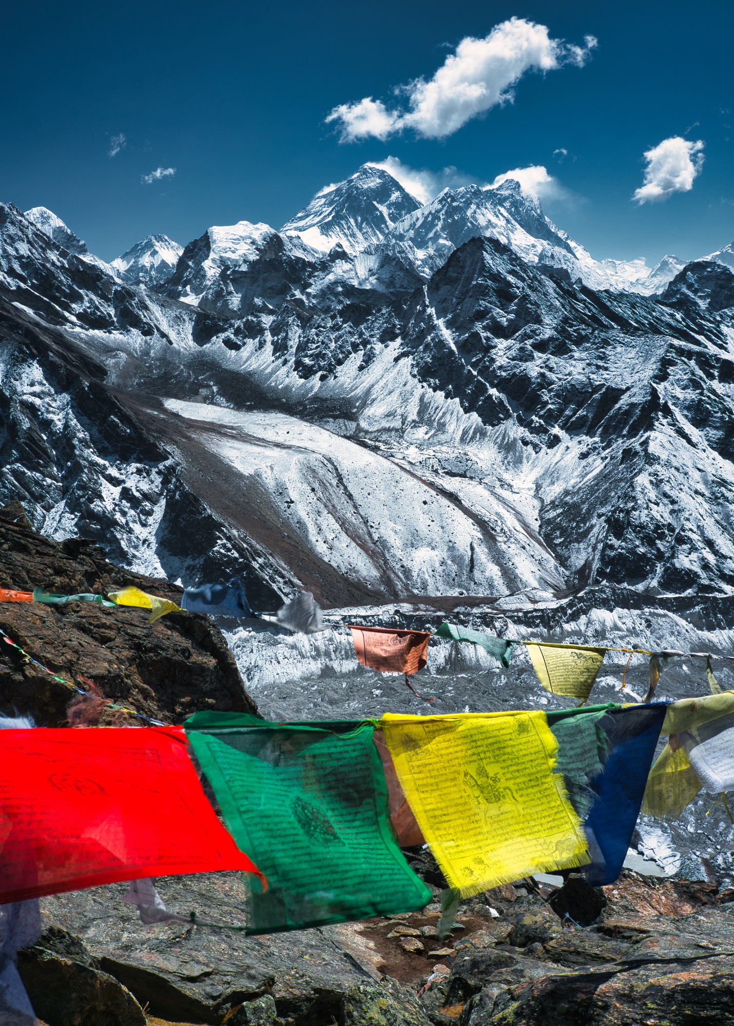 Der Trek beginnt in Lukla und führt durch traditionsreiche Dörfer wie Namche Bazaar, Khumjung, Phortse und Gokyo. In diesen abgelegenen Siedlungen erleben Sie die herzliche Gastfreundschaft der Sherpa und gewinnen Einblick in ihre jahrhundertealte Lebensweise. Ein besonderes Highlight ist das eindrucksvoll gelegene Tengboche-Kloster - das spirituelle Zentrum der Region mit Blick auf die Ama Dablam (6.814 m). Auch unterwegs begleiten Sie immer wieder Mani-Mauern, Gebetsfahnen und Stupas, die dem Weg eine besondere, fast meditative Atmosphäre verleihen.